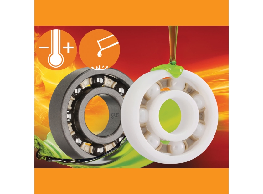 igus has developed two new chemical-resistant and particularly durable xiros ball bearings especially for use in contact with chemicals. They are 65 times more wear-resistant than ball bearings made entirely of the plastic polyether ether ketone (PEEK).